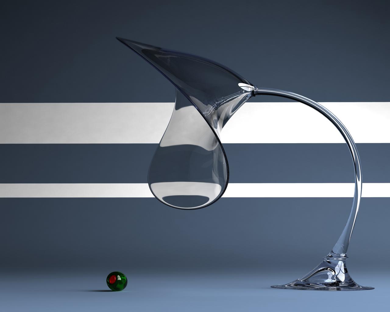 a twisted martini glass w/ olive. modeled with maya, rendered with mental ray.